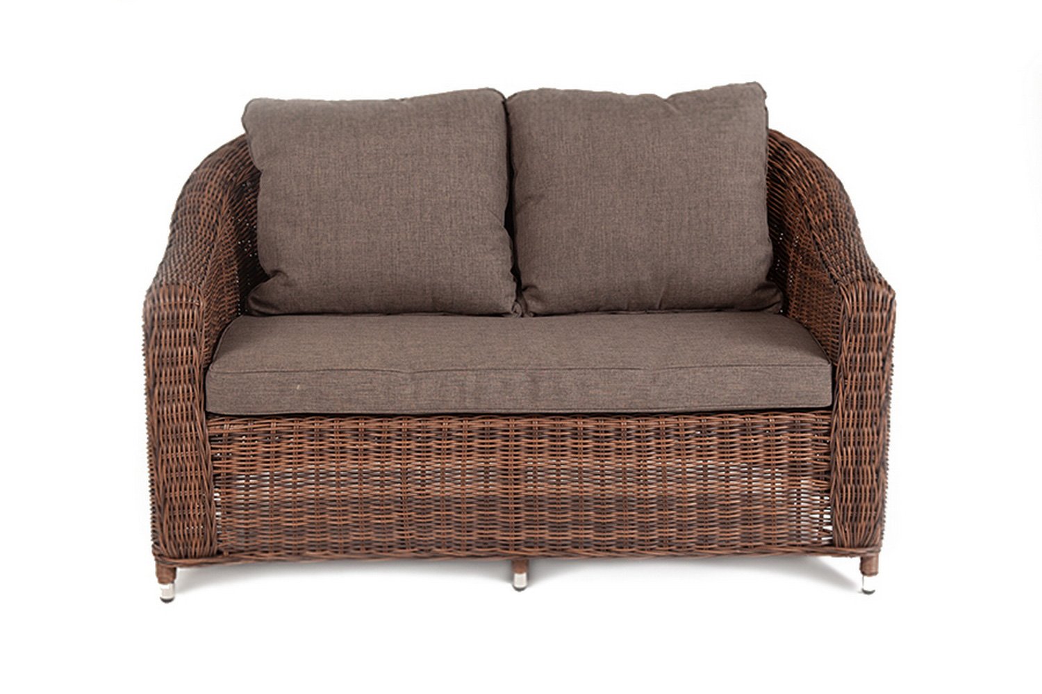 Таким садовым диваном может стать диван из коллекции Кон Панна. Диван Кон Панна – это диван размером 137х80х80 см, с коричневой оплеткой, широкими подлокотниками и закругленной спинкой.