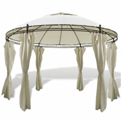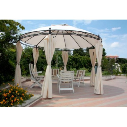 У нас вы можете приобрести круглую крышу, предназначенную для павильона, такая крыша имеет двойной вверх. У неё бежевый цвет, а также диаметр 3,5 метра. Также вы можете выбрать и другие цвета на выбор, например молочный, бежевый, цвет кофе с молоком, зелёный, а также коричневый. Изготовлена данная крыша из такого материала, как Оксфорд, а весит эта крыша всего 4 кг. Такая элегантная шестиугольная беседка будет смотреться очень дорого и очень стильно. Она состоит из шести опор, есть вентилируемая крыша, предназначенная для того, чтобы через неё лучше проходил воздух. Боковые стенки могут спасти вас от ветра и дождя.