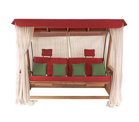 Тенты и шторы, предназначенные для садовых качелей способны очень хорошо защитить от осадков и прямых солнечных лучей. Это очень важно, так как краска на металлических частях качелей может сильно трескаться и облазить, а металл в тот момент, когда он контактирует с водой, будет подвергаться воздействию коррозии. Кроме того, негативно повлиять на лакокрасочное покрытие могут и ультрафиолетовые лучи, в данном случае краска будет шелушиться и отпадать, а цвет не будет таким ярким. Кроме того, выгореть могут и мягкие элементы, они будут выглядеть не так привлекательно. Благодаря тенту, предназначенному для садовых качелей можно защитить качели от падающих веток и птичьего помёта, из-за чего летний отдых станет хуже. Качели, у которых есть тент, выглядят намного более привлекательно, что тоже является огромным преимуществом в пользу выбора тента. Также такой тент может продаваться вместе с противомоскитной сеткой, благодаря чему вы также будете защищены от насекомых, которые сильно могут омрачить летний отдых.